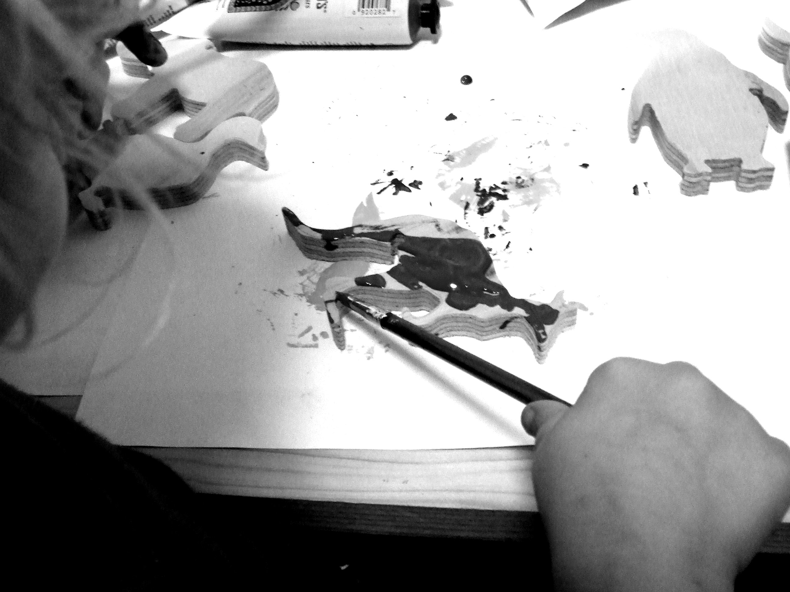 Notre petit théâtre ouvre régulièrement ses rideaux pour des petites représentations rigolotes, Max et les Maximonstres (cf old blog) sont un peu trop souvent à l’affiche…du coup j’ai scié quelques petits animaux pour diversifier les shows !