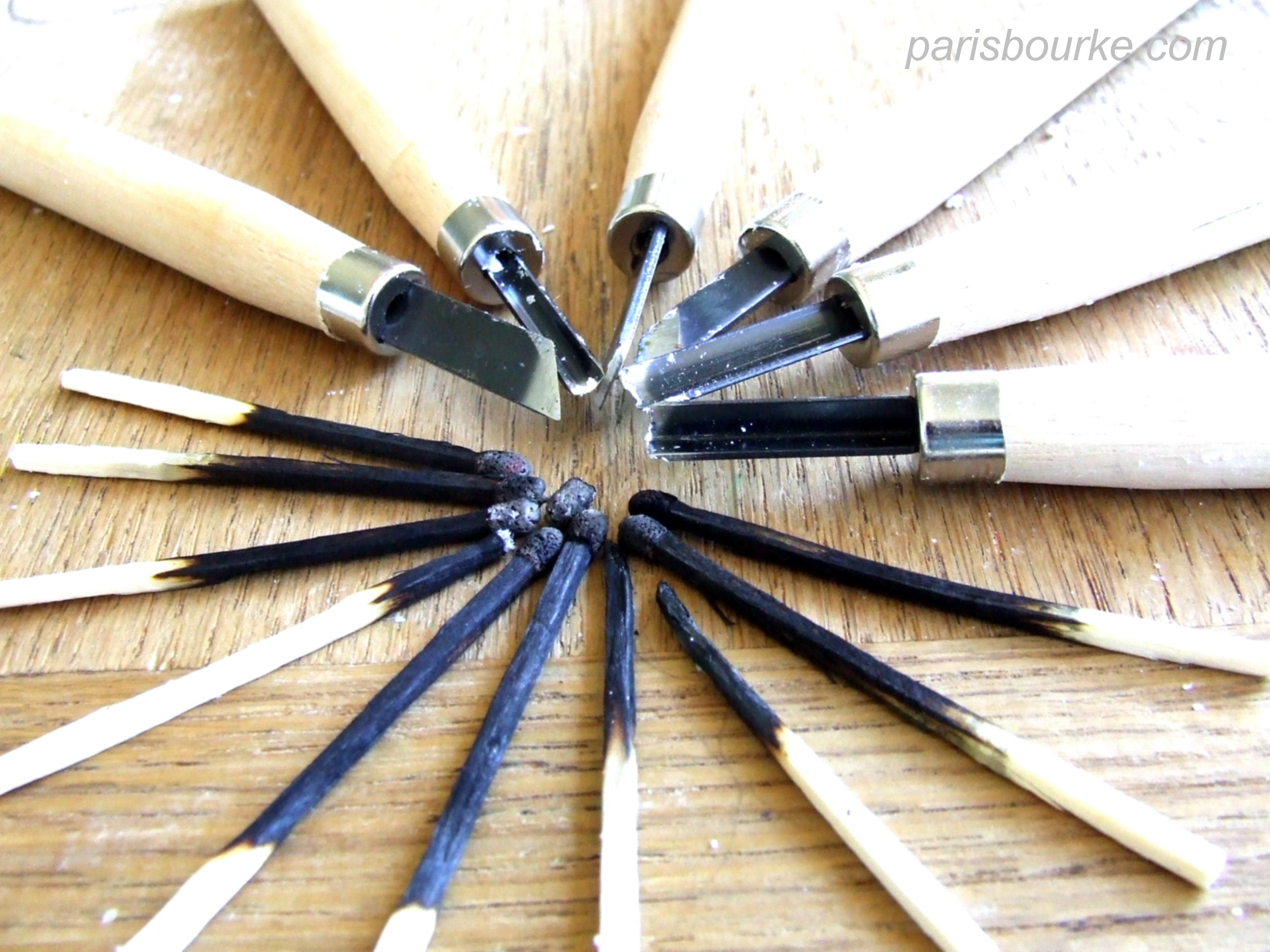Et puis un peu plus tard voyant mes outils de sculpture, l’envie d’essayer étant irrésistible, les voilà creusant et gravant dans des bougies: