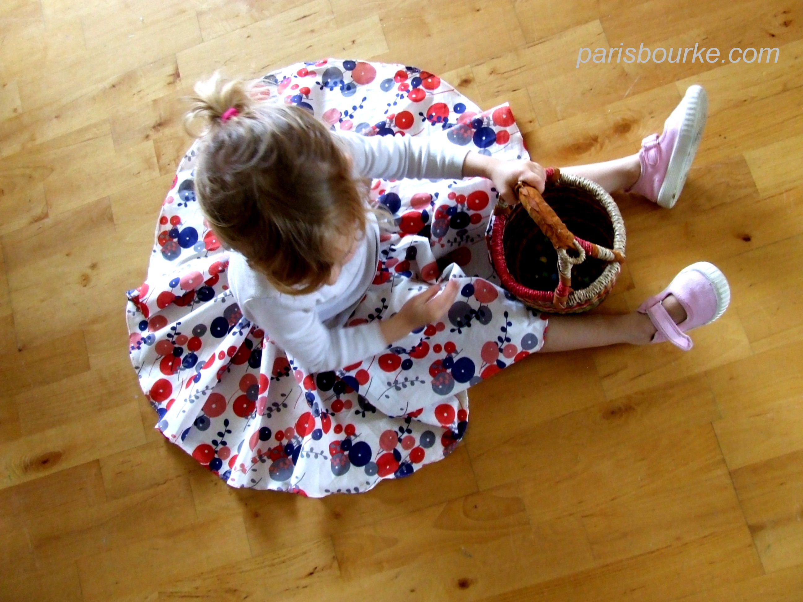 Every little girl should have a circle Skirt ! My miss spins round and round all day long, I think I should sew another one for me…For the pattern it is really simple, just cut a round piece of fabric and add an elastic. Ready, steady, sew!